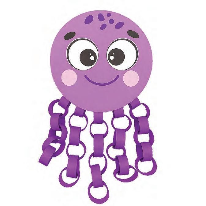Follow the steps to make a wiggly octopus. Use the coloured sheets given at the back of the book.