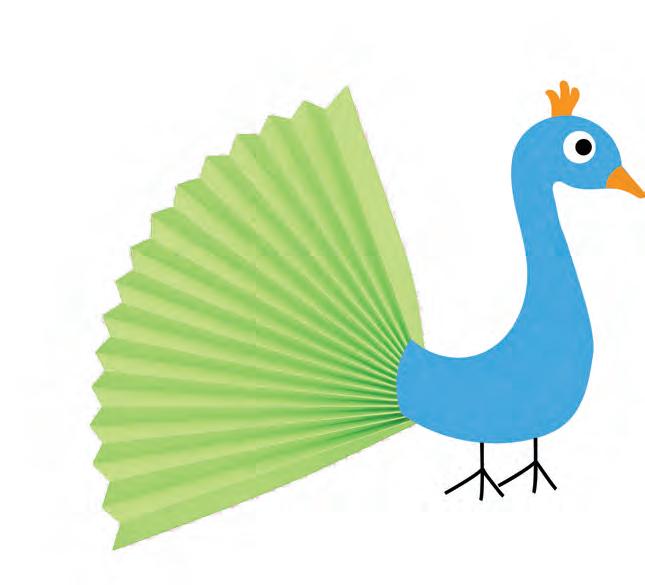 Follow these steps to make an attractive peacock. Use the coloured sheet given at the back of the book.
