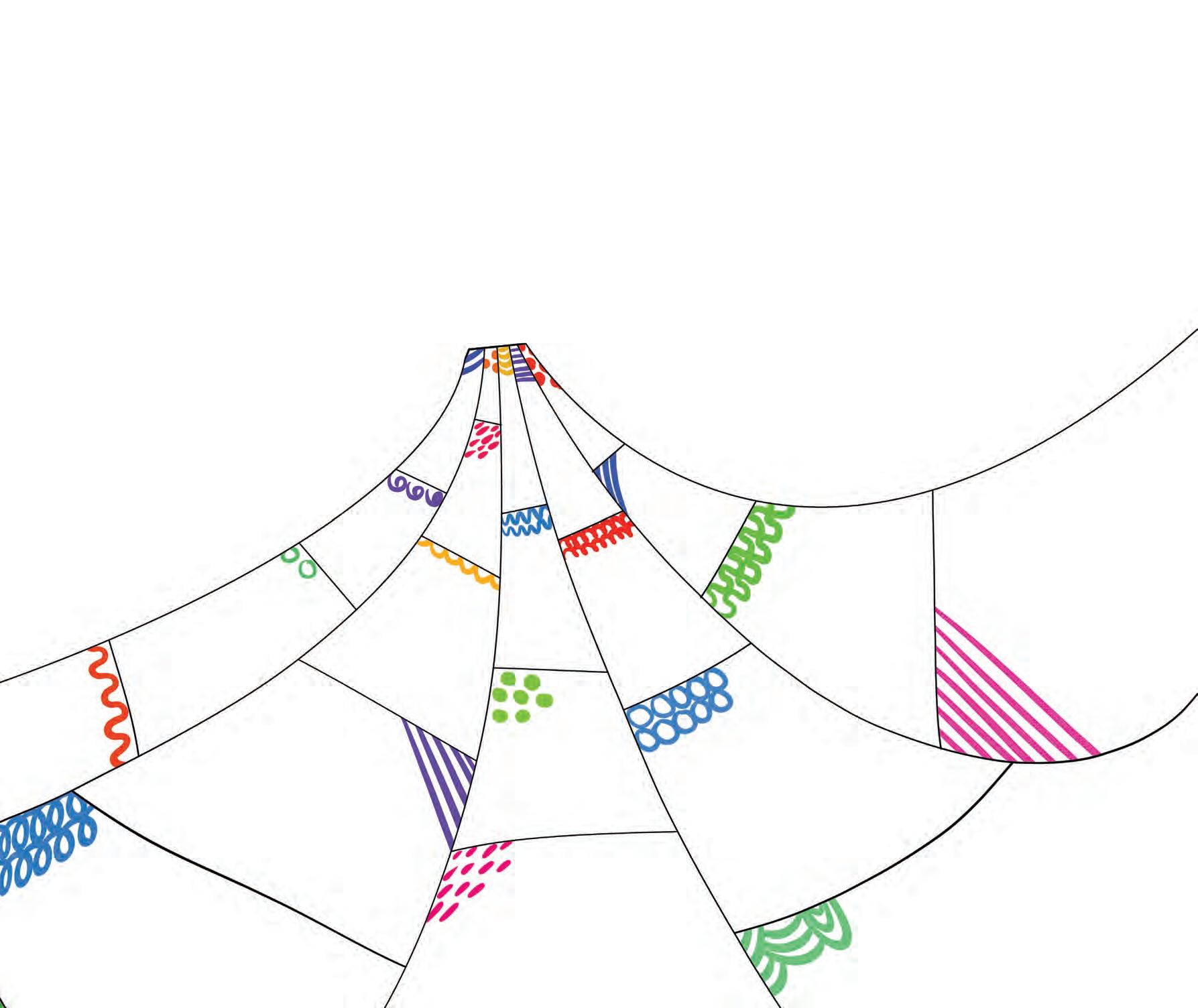 Complete the patterns using coloured sketch pens to decorate the skirt beautifully.