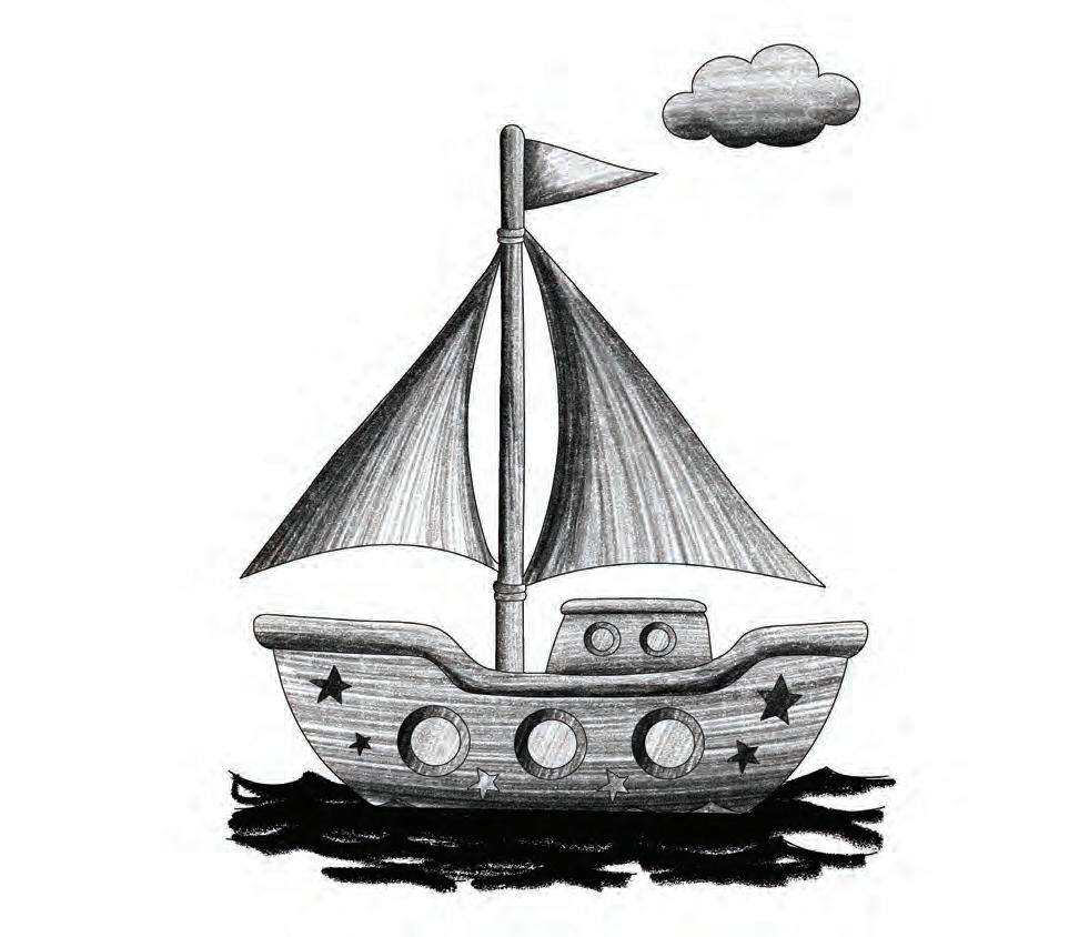 Use your 2B pencil to shade the boat neatly with soft and even strokes.