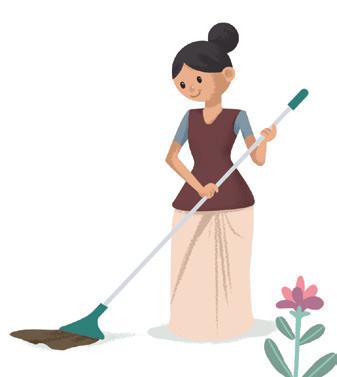 On Sunday, Rani and the others wear their gloves and masks. They bring new dustbins too.
