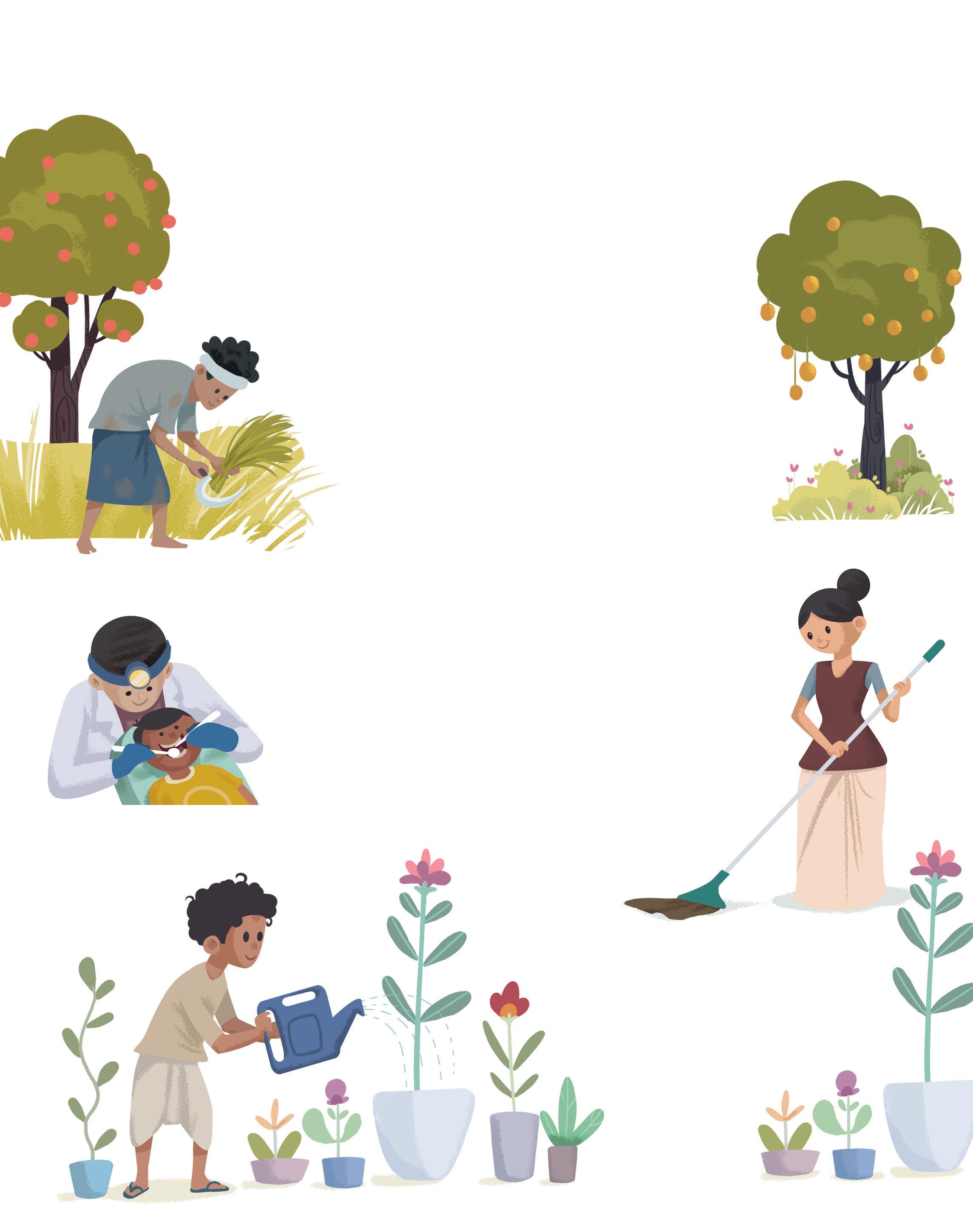 They pick up all the garbage and throw it in the dustbin. They also water the plants and trees.