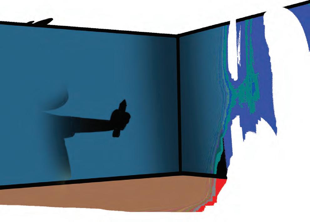 Wax and water do not mix with each other. When paint is added, the colour sticks to the sheet but slips off the wax. That is why the secret message shows up clearly in white.