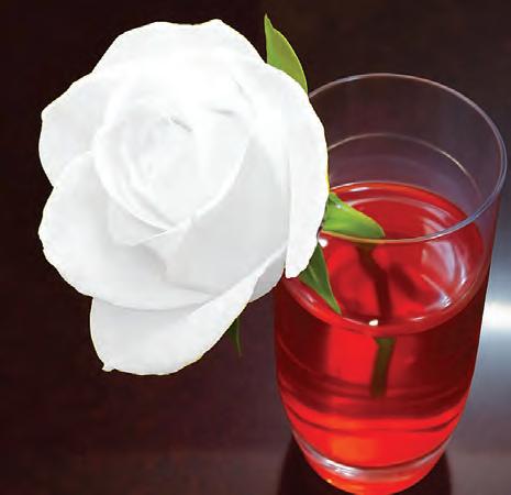 Split a white rose stem into two and place each part in different coloured water to get multicoloured petals.