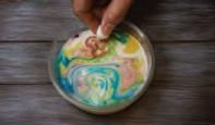 5. Lift the paper to see the bubble print! Try different colours to create beautiful designs.