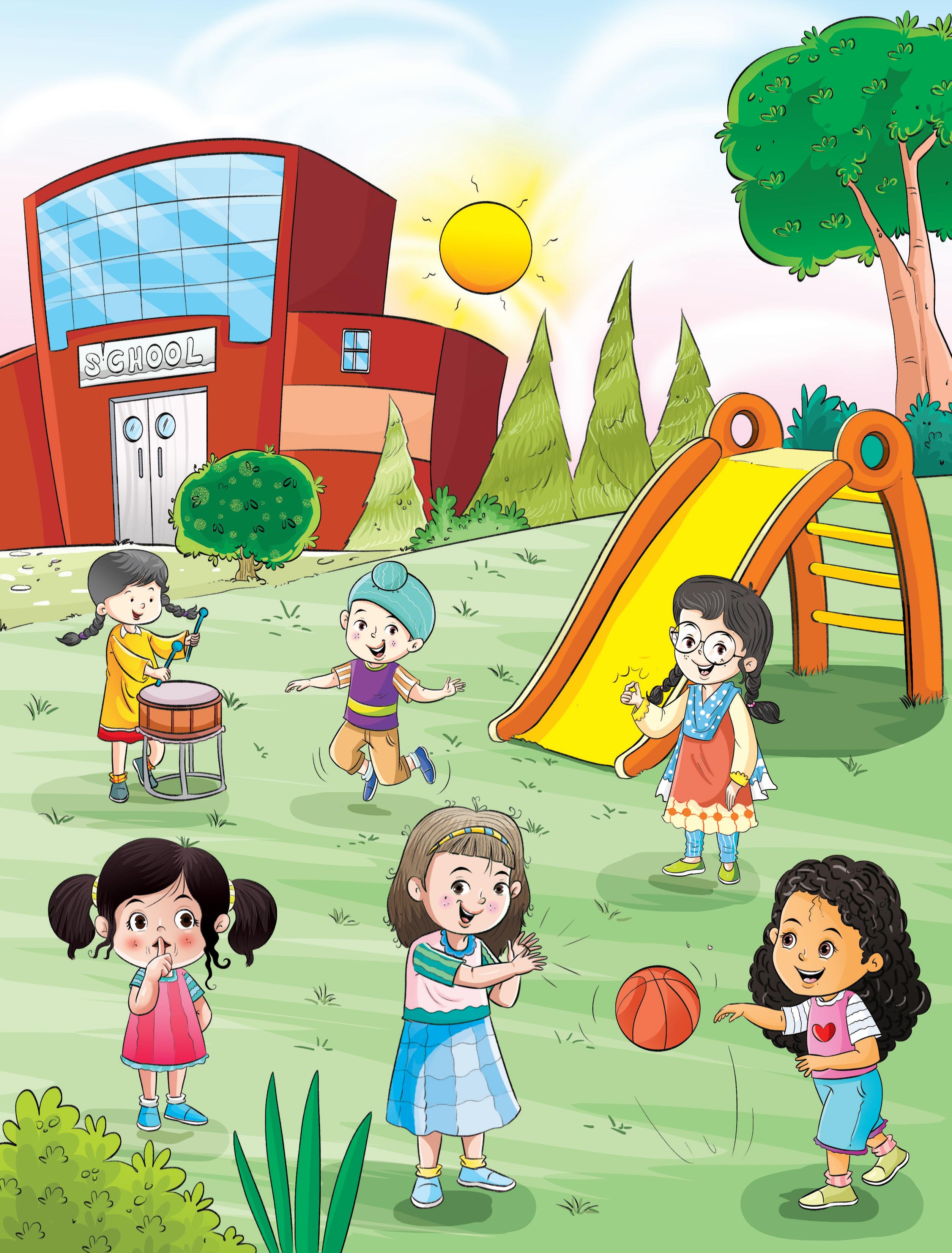 Mira and Raja are at school. They meet the teacher Miss Nina.