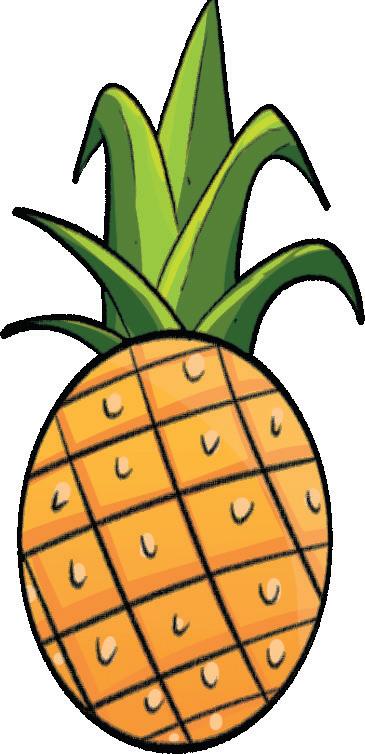 Dip your fingers in yellow paint and press on each dot to make a pineapple. Say /p/-/p/-pineapple.