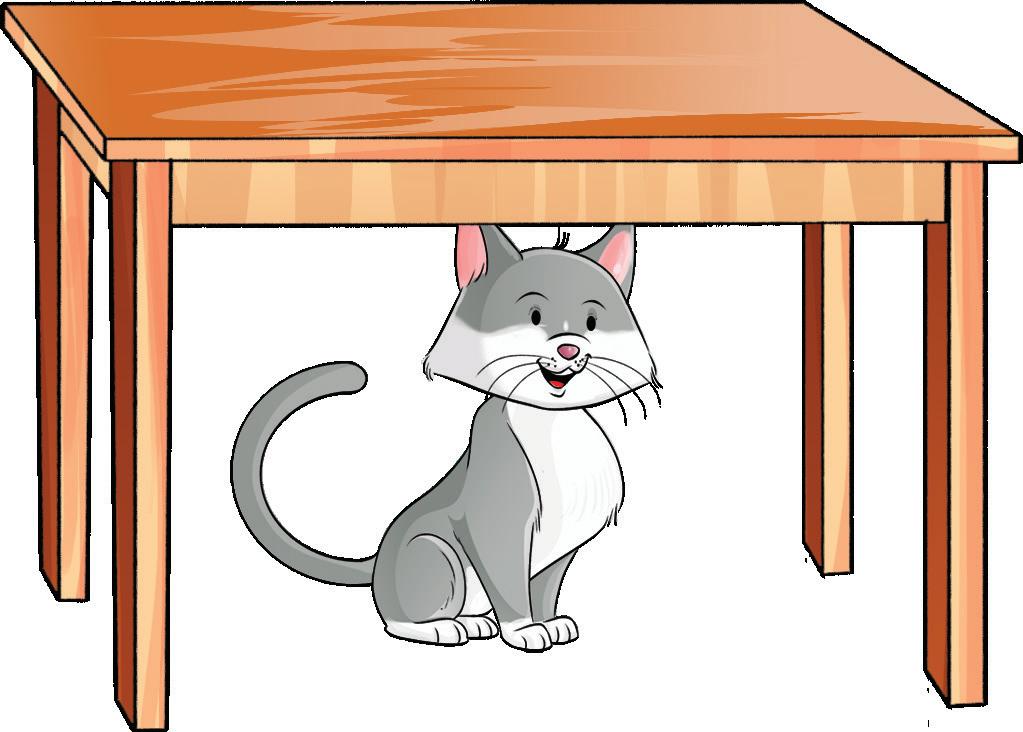 Circle the animal that is under the table. Say /u/-/u/-under.