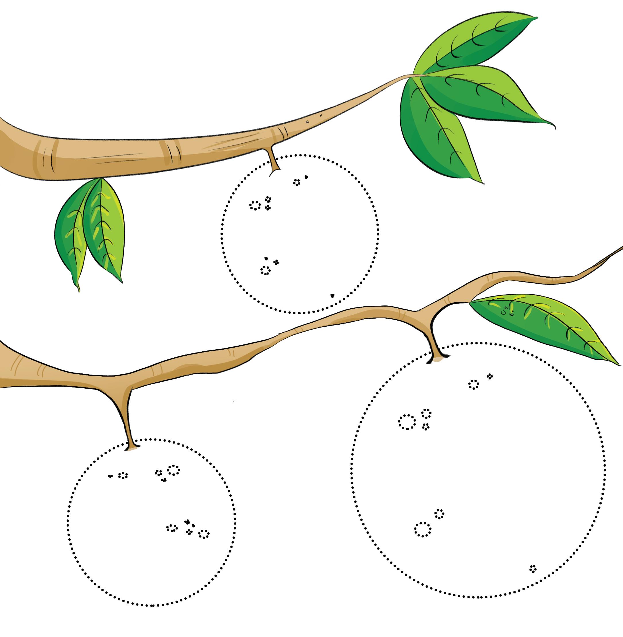 Stick mangoes on the mango tree. Say /m/-/m/-mango. (Use the sticker sheet.)