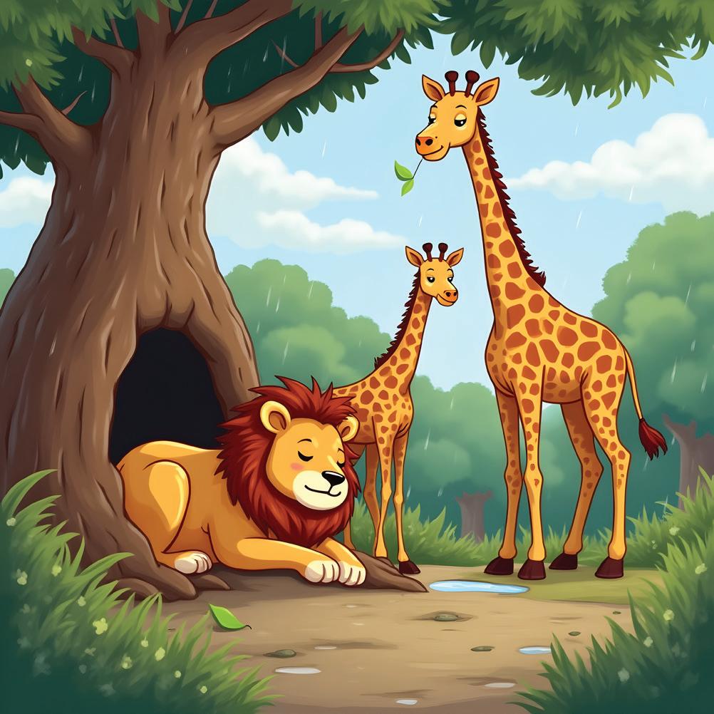 Siya loves animals. One day, she went to the zoo. She saw I lion with 2 giraffes.