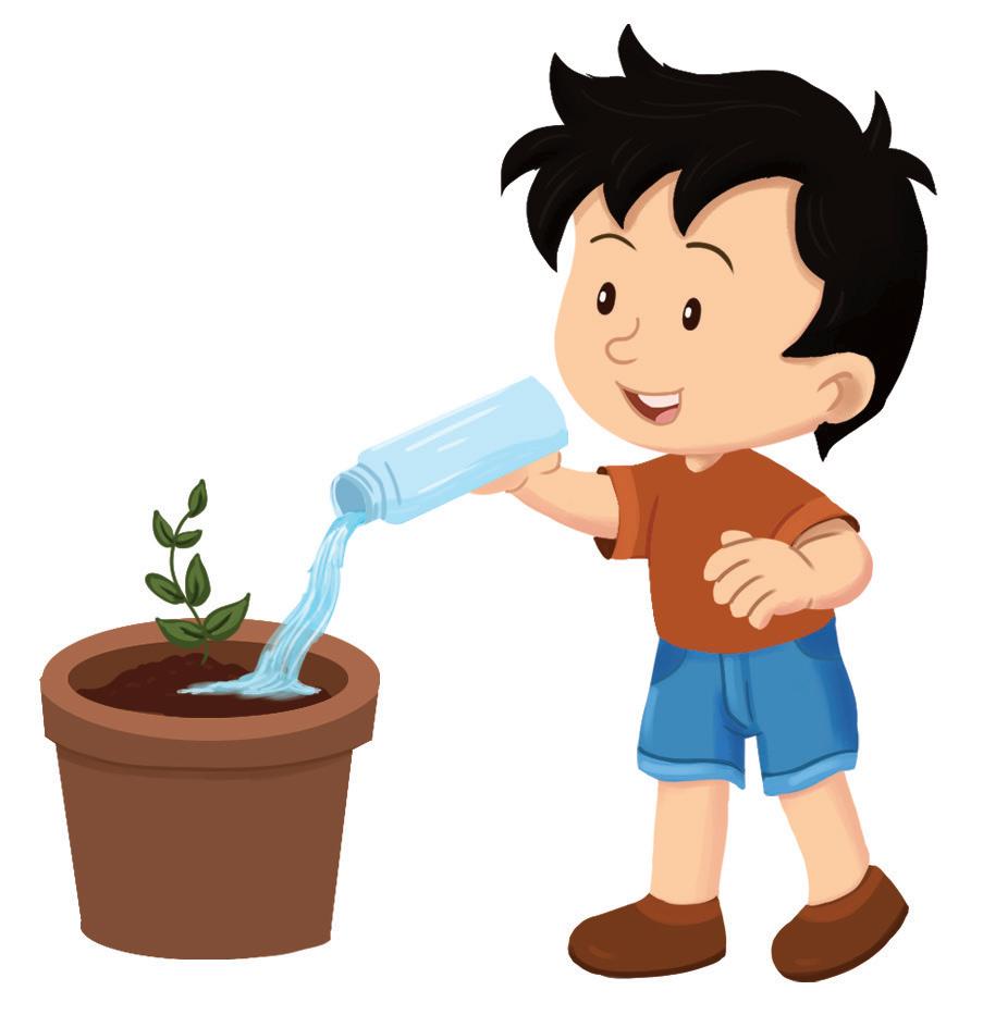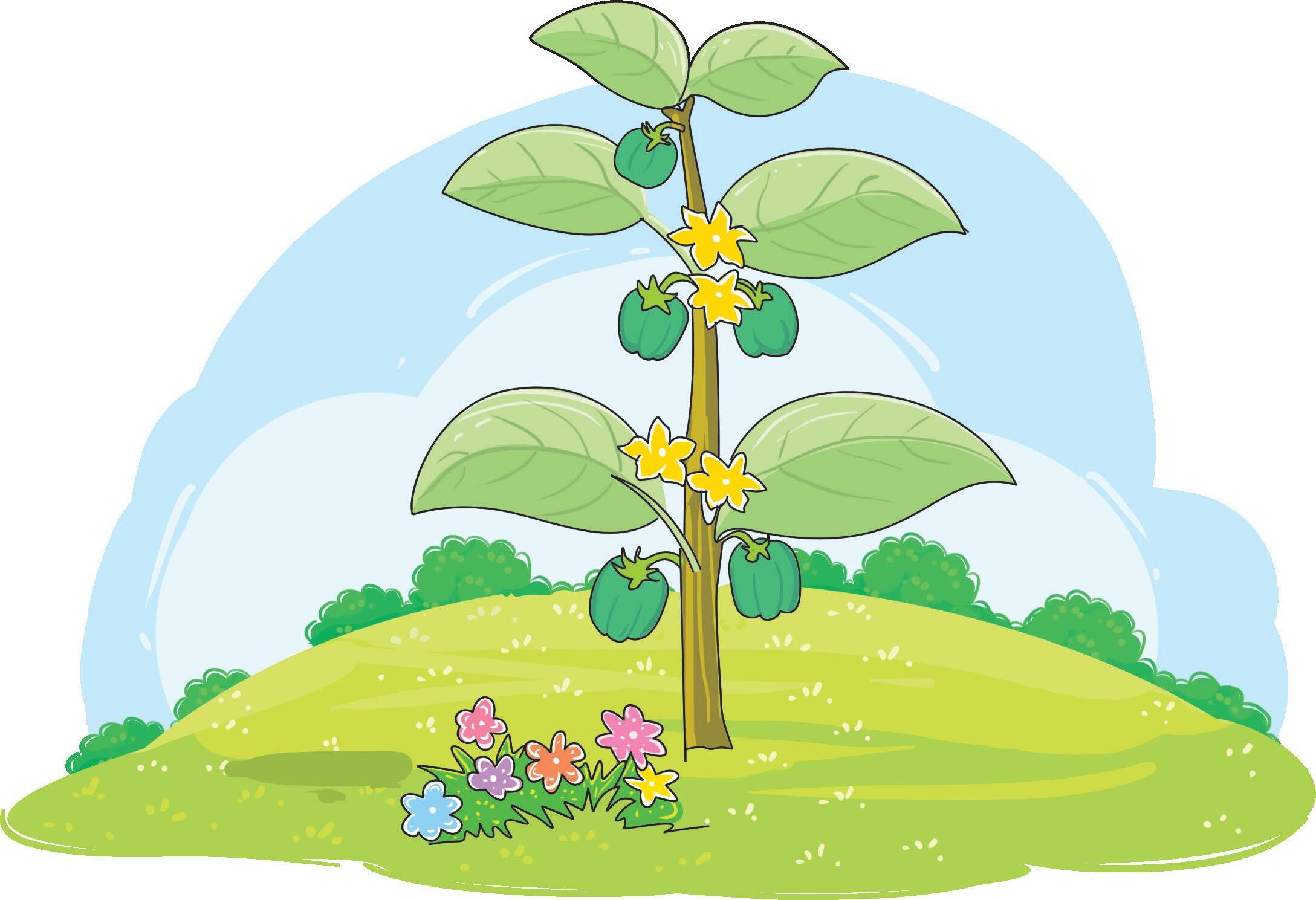 We see plants all around us. They give us clean air, food and shade. Let us look at the parts of the plant and say their names aloud.