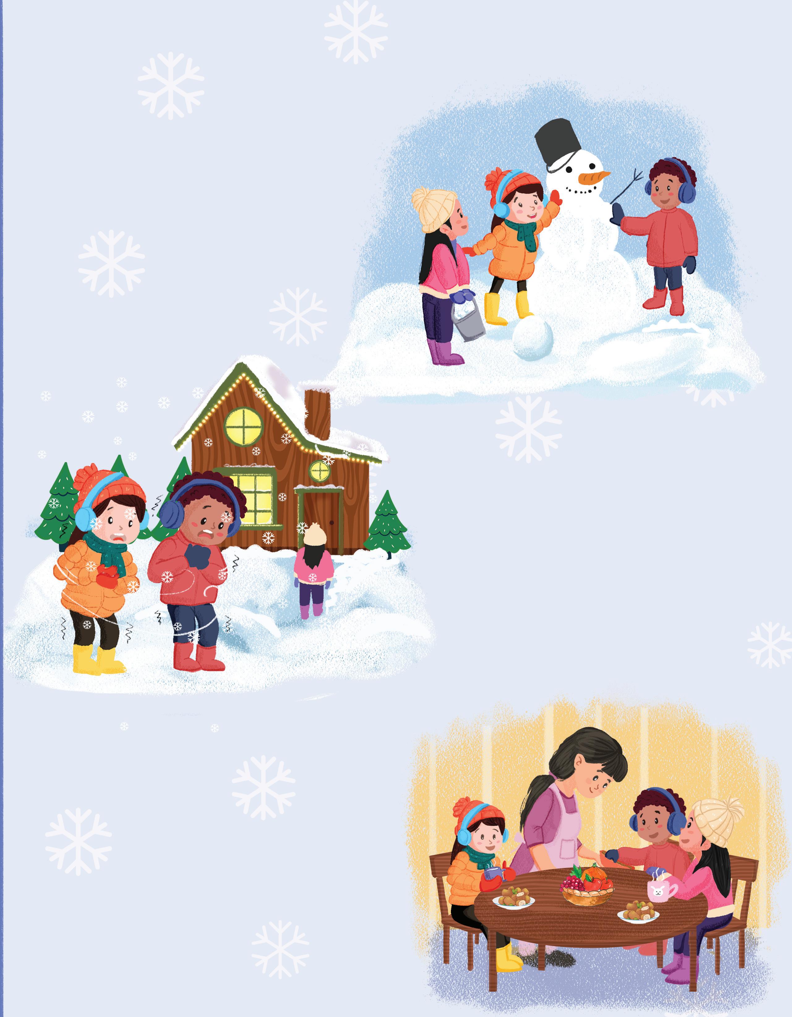 Talk to the children about the clothes we wear, things we eat and activities we do on a cold day.