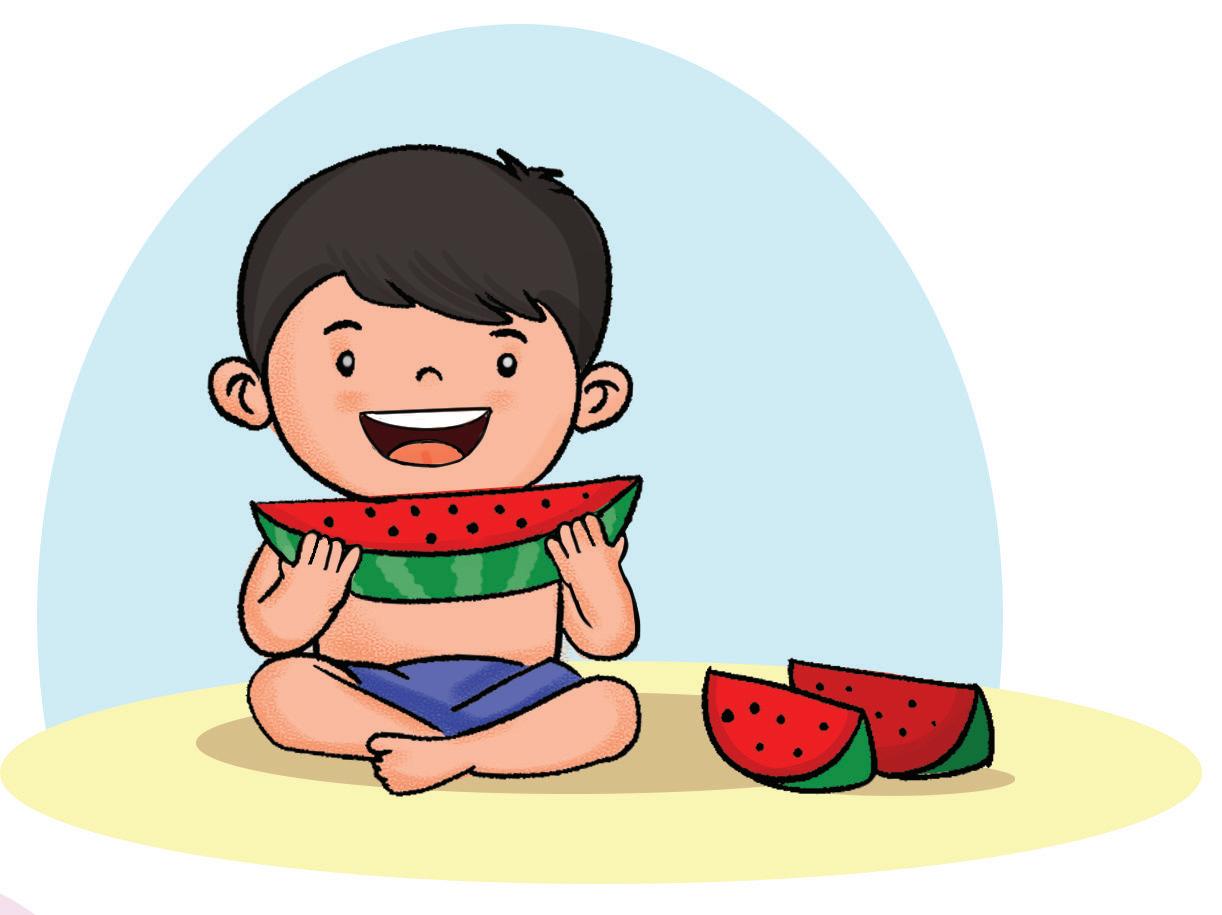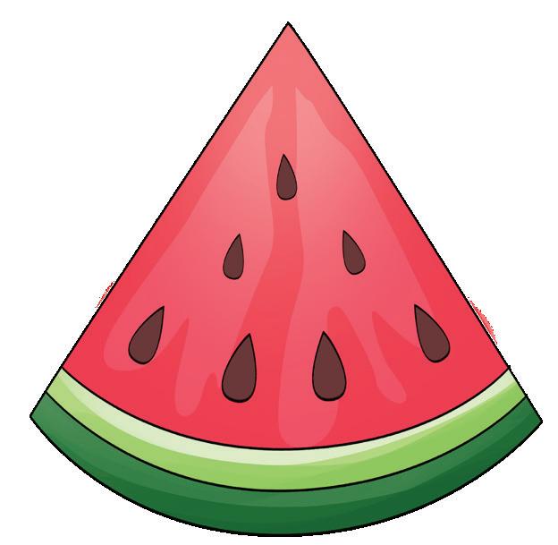 Dip a cotton bud in black paint. Then, press it on the watermelon to print the seeds. Say /w/-/w/-watermelon.