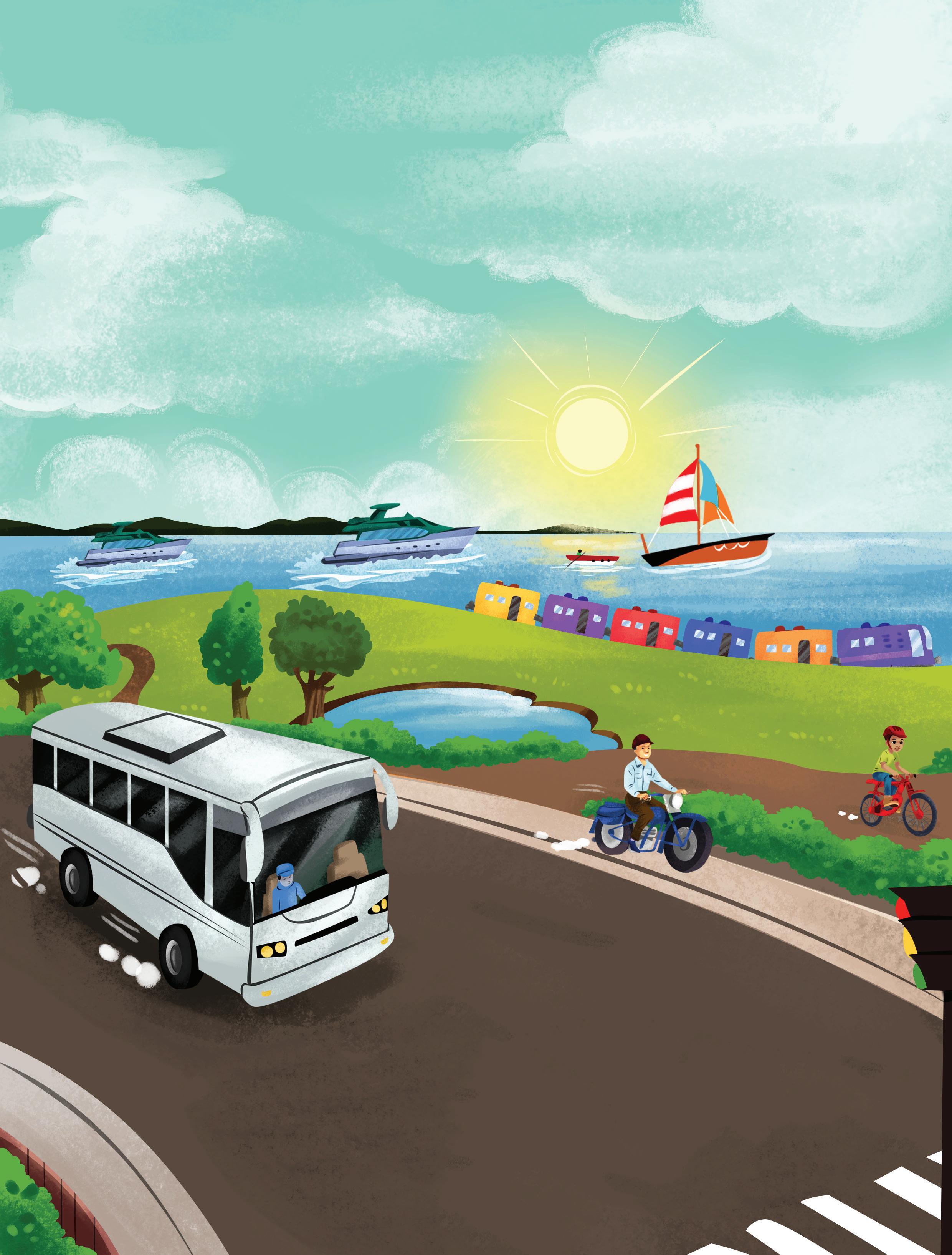 We use different vehicles to go from one place to another. Let us look at their pictures and say their names aloud.