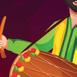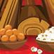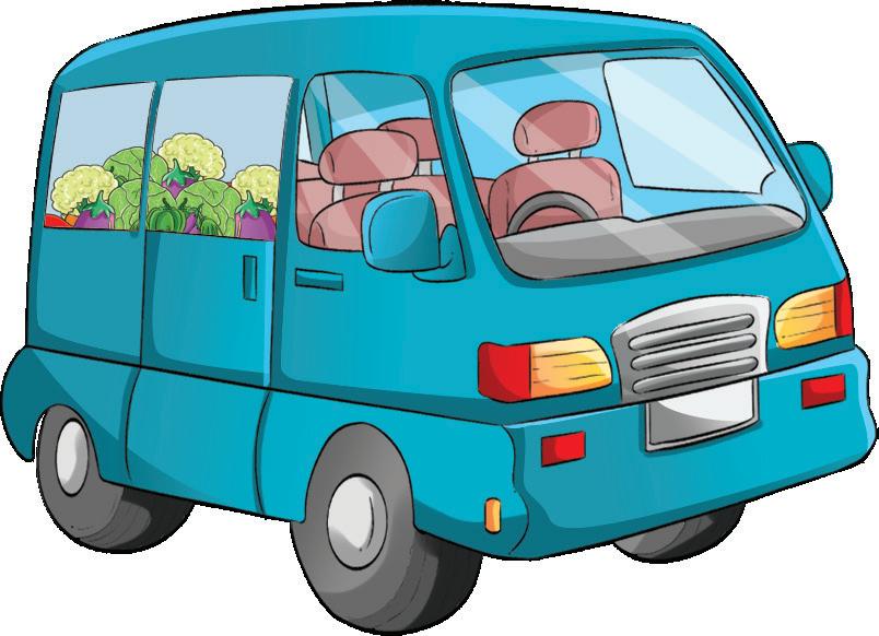 VVan brings vegetables fresh and bright, Violin and vase make a lovely sight.