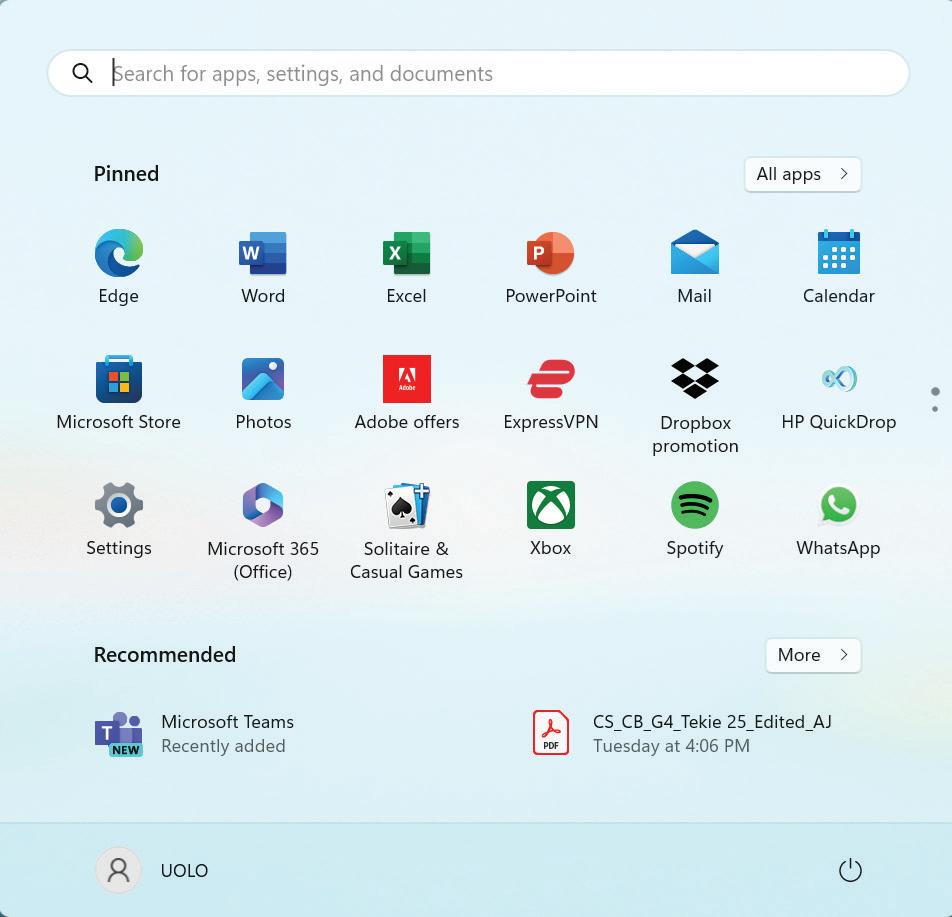 2 The Search bar is used to find files, programs, settings, etc., on the computer.