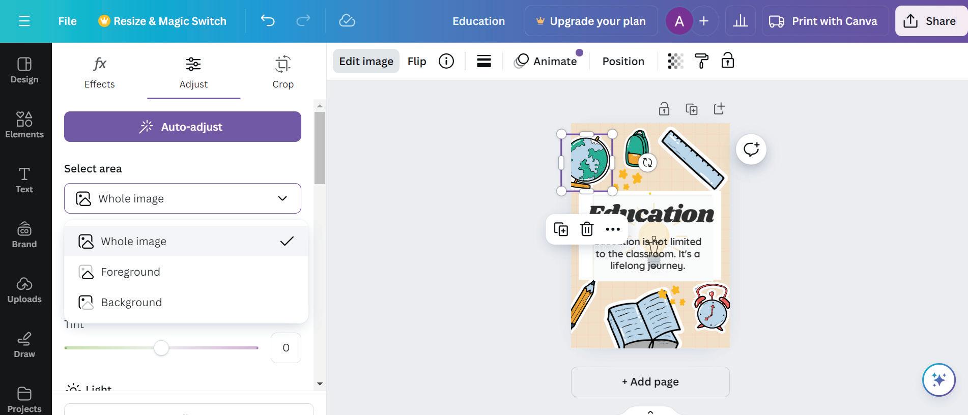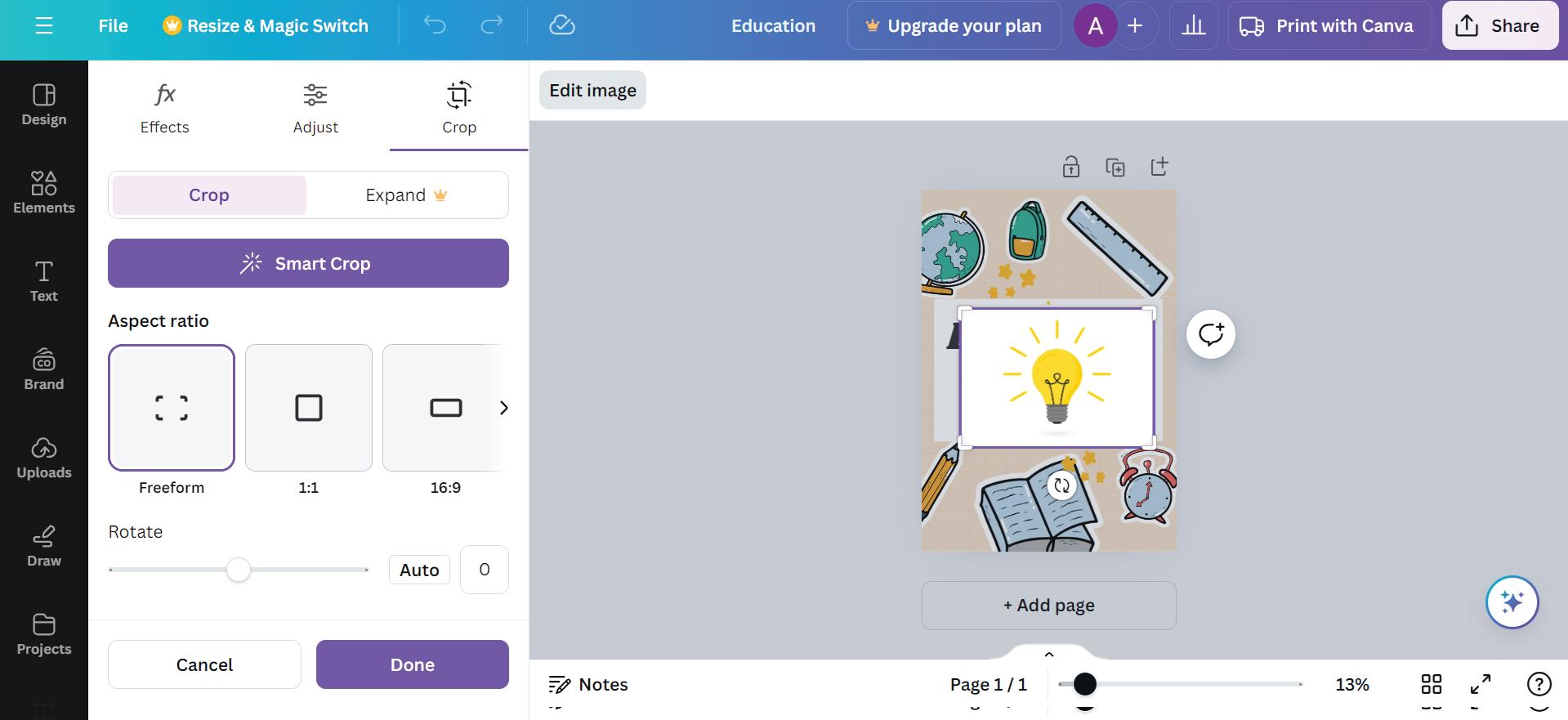 2 Seema wants to remove unwanted areas from her photo. Which option should she use in Canva to do so?