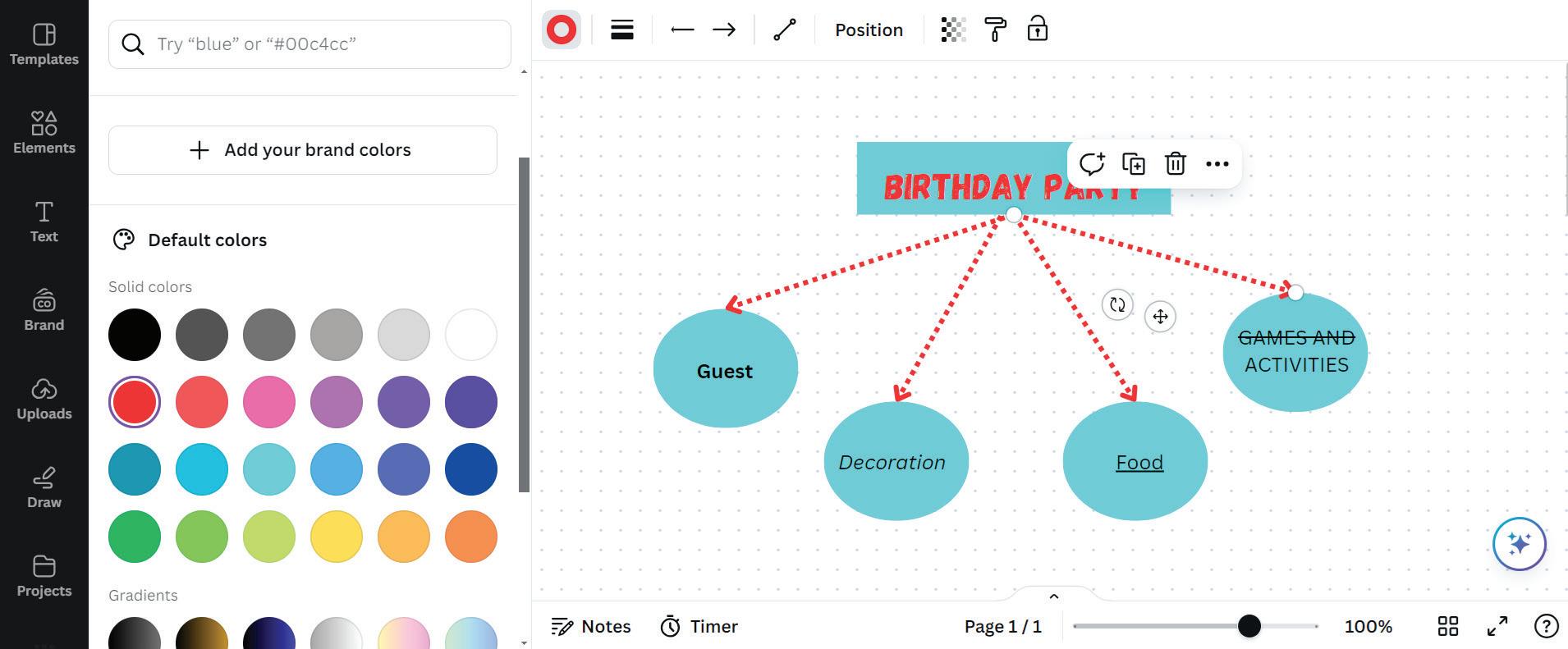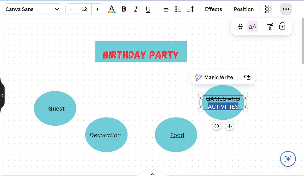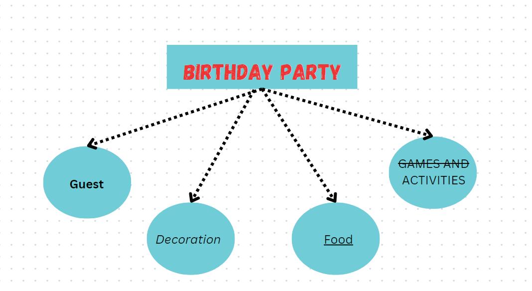 3 Manisha wants to underline some text in her mind map. Which option can he use to do so?