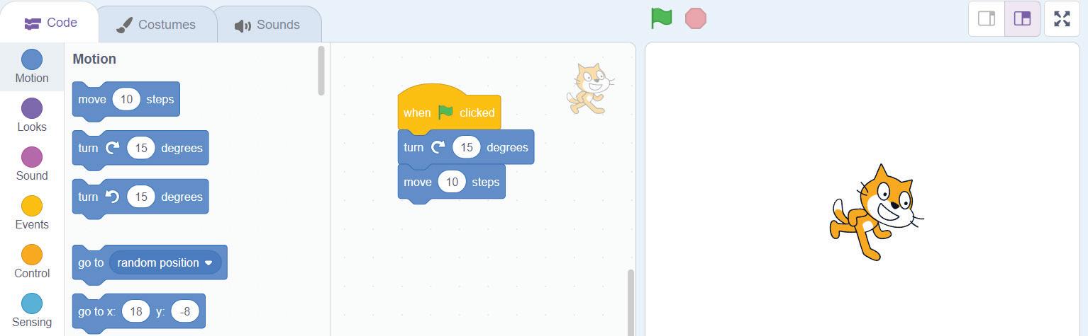 1 Which button do you click to run the script in Scratch?