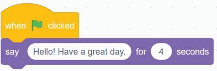 4 Display the message for four seconds by typing ‘4’ in the second text box of this block.