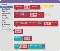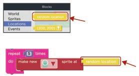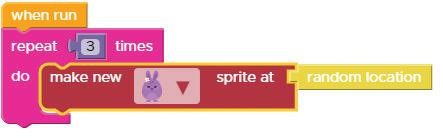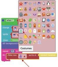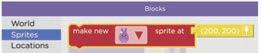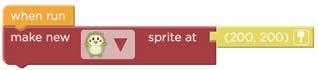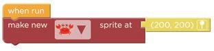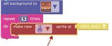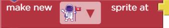 2. Drag and attach the make new sprite at block inside the repeat block. Make the Mars people sprite.