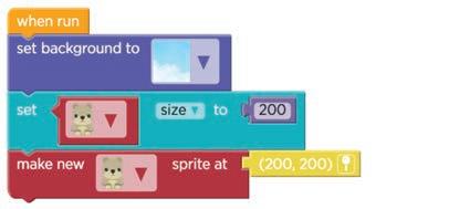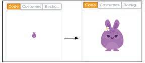 2 When we run the code, it should show the chimpanzee as big as in the given picture. Find out the bug in the code. Fix it by numbering the blocks in the correct sequence.