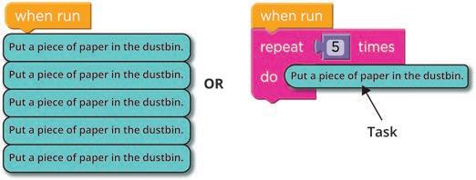 2 The block repeats the instructions inside it forever, unless the Stop button is clicked.