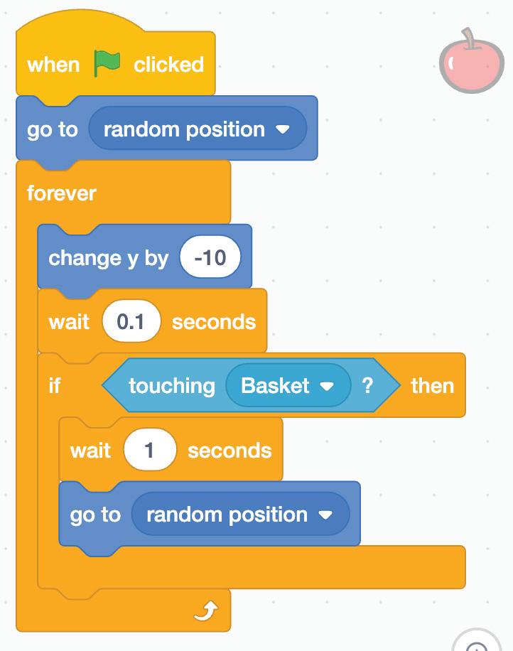 1 Look at the blocks given below. Number them from 1 to 3 in order to make the Apple sprite disappear if it touches the Basket.