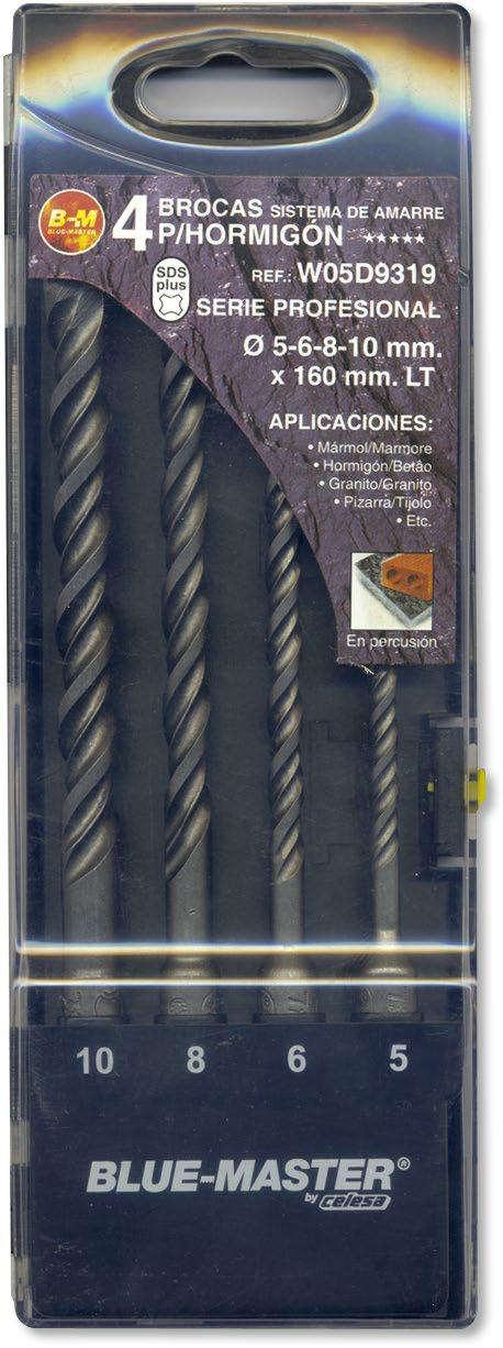 Compuesto por las siguientes brocas: 4mm (1 ud.), 5mm (1 ud.), 6mm (2 uds.) y 8mm (1. ud). En caja plástica clasificadora.