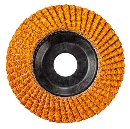 Disco abrasivo de láminas de circonio con soporte de material fibroso. Buen rendimiento en acero inoxidable y rendimiento inmejorable en acero. El disco abrasivo tipo abanico, ha sido diseñado específicamente para trabajar acero inoxidable, acero (acero negro, también denominado acero de construcción o acero al carbono) y acero fundido. El disco destaca por su larga durabilidad y por un arranque de material agresivo constante.