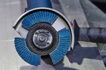 Disco abrasivo de láminas de circonio. Gracias a sus tres entalladuras, VISION SPEED se vuelve transparente al girarse. Esto permite un control constante del resultado del trabajo. Vista sin obstáculos sobre la pieza de trabajo.