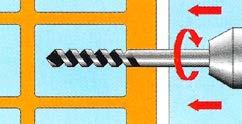 La pieza a jar ya situada sirve de plantilla para realizar el taladro.Introducir el anclaje en el taladro a través de la pieza a jar. Al girar el tornillo, la tuerca asciende y fuerza la apertura de los segmentos metálicos, lo que asegura la jación del anclaje