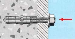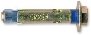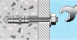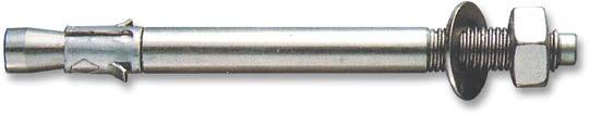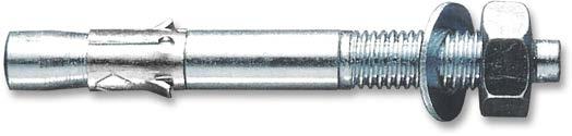Anclaje metálico para cargas medias en materiales macizos como hormigón o piedra natural maciza. Simples y rápidos de colocar: la expansión se realiza al desplazarse el cuerpo del anclaje (cuando se aprieta la tuerca sobre la pieza a jar), que expansiona el casquillo metálico contra las paredes del taladro.