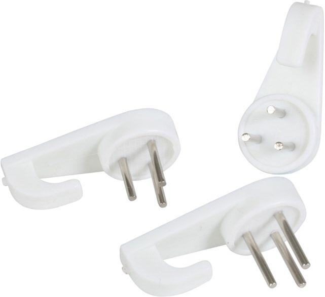 Soportes de 3 puntas, de color blanco. 6 piezas por blister.