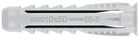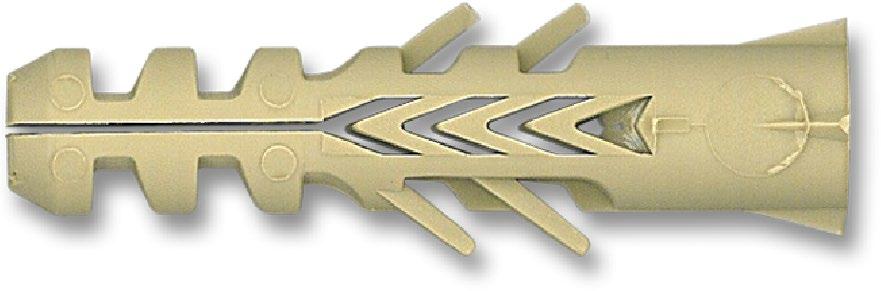 Taco de poliamida con excelentes prestaciones mecánicas para fij ación de cargas ligeras en materiales de construcción.