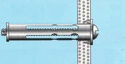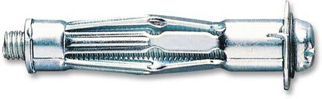 Taco de acero cincado de rosca métrica de expansión total (el taco se abre adoptando la forma de un paraguas, de modo que los 4 ó 5 puntos de apoyo que se forman desplazan la presión lejos del agujero, repartiendo al mismo tiempo la carga para conferir una gran resistencia al arranque. Sistema antigiro. Colocación fácil y sencilla. Para jaciones: de cargas ligeras sobre falso techo, ladrillo hueco, bovedilla, placa de yeso. Precisa de herramienta complementaria para expansionar el taco (ver pinza metálica para Taco de Hueco).
