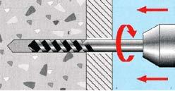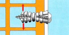 Para fijaciones en: hormigón, piedra natural, mampostería, ladrillo macizo,... Ejemplos: canalizaciones (eléctricas, de aguas, gas, calefacción, sistem as de aislamiento y cargas ligeras en general), montajes (sanitarios, toldos y carpintería de todo tipo, aluminio, metálica y madera).