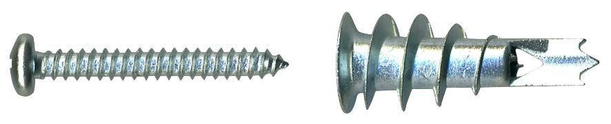Taco autoperforante para placas de yeso para una instalación rápida y sencilla. La punta de metal negro garantiza una instalación sencilla y segura. Elevado par de apriete cuando el anclaje está instalado para una sensación de bienestar y una sensación óptima en el ajuste.El bloqueo antigiro evita que gire en el ori cio de perforación. Uso de ganchos, tornillos y ojal es disponibles en el mercado. Accionamiento PZ2 - mismo accionamiento para enchufe y tornillo.