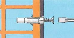 Fijación rápida, con montaje a través del material a fijar, instalándose por golpe sobre el taco de nylon y posterior roscado del tornillo. Al realizar la expansión sobre materiales huecos el taco se anuda, lo que lo hace especialmente apto para materiales huecos o cuando se desconozca el material base donde se realiza la fijación. Apto para gran variedad de materiales base: hormigón, piedra, ladrillo macizo, ladrillo hueco, bloque hueco, etc.