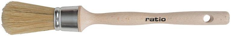 Brocha virola. Fibra de cerda especial con PET. Especial para recortar. Su forma redondeada facilita la carga de pintura para lograr un acabado más uniforme con una óptima nivelación. Acabado de precisión. Para todo tipo de pinturas. Mango ergonómico de madera.