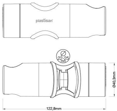 Material: extremos PP / POM / PVC. Barra de aluminio.