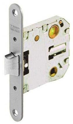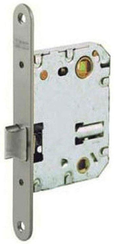 Cerradura para embutir de doble cerrojo para alto tráfico con frente redondeado y acabado en acero inoxidable. Válido indistintamente para puertas de paso o de condena (frente estrecho 20 mm adecuado para puertas con solapa). Desbloqueo automático de condena: si se acciona la condena con la puerta abierta, ésta salta al cerrarse la puerta.