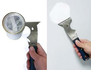 Hoja remachada apta para trabajos con martillo. Para limpiar rodillos de pintura, paredes, quitar clavos, óxido, revestimientos viejos, restos de alfombras, corregir irregularidades de yeso, para abrir botes de pintura.