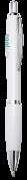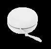 Wireless speaker with white ABS body and natural bamboo. FM radio function, hands-free, Mini SD card slot and 3W output. Rechargeable battery. Cable included. Presentation in eco design box.