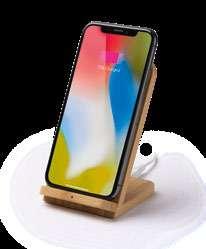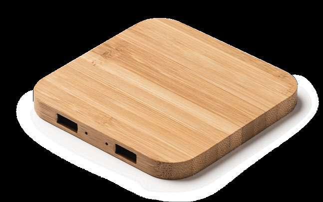 Wireless charger in natural bamboo. Charging capacity: up to 3 devices simultaneously. Compatible with wireless technology models. DC5V. DC5V/2.1A USB output port. Presentation in eco design box. 9 x 1 x 9 cm 1/25 50