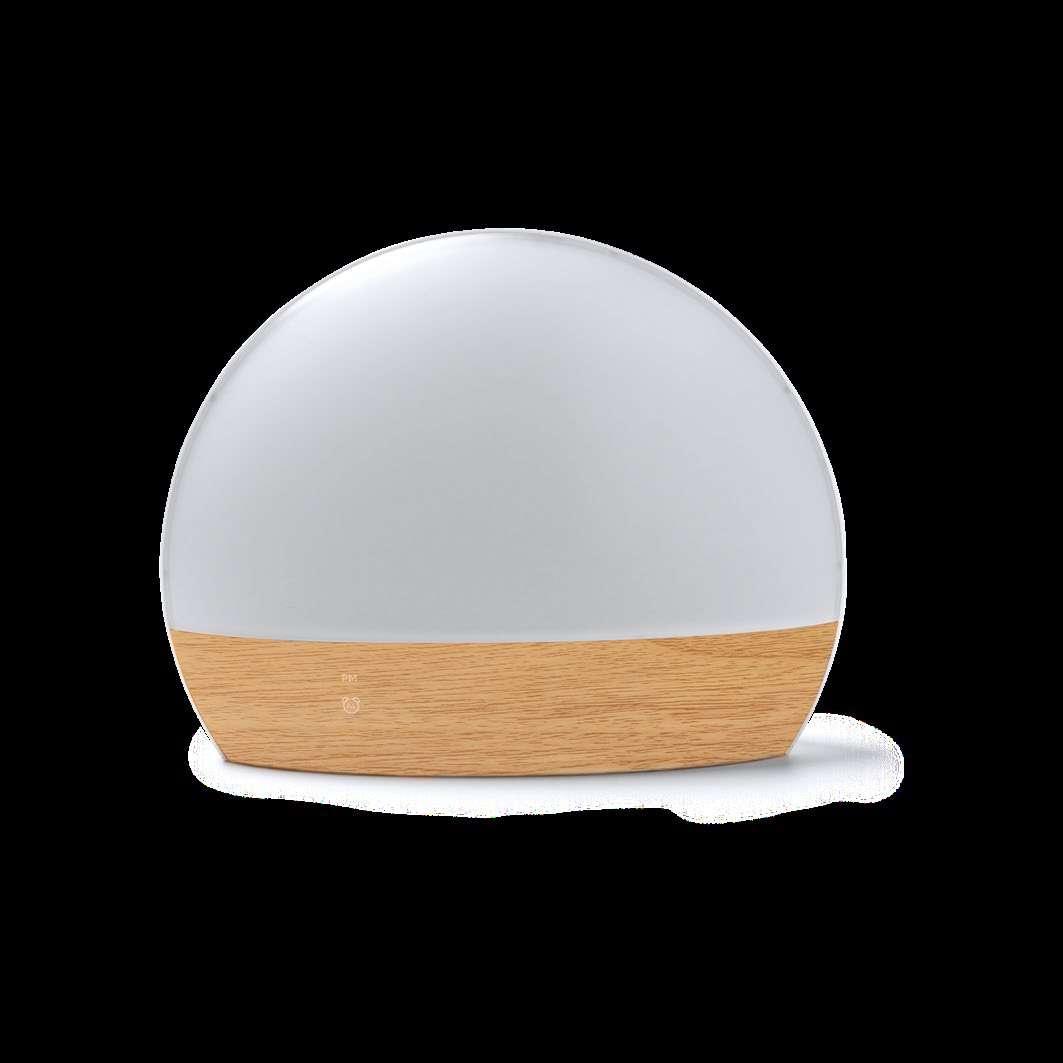 Alarm clock lamp in recycled ABS with progressive bright light mode. Features: time, date and temperature. Led light in multiple colours. Cable included. Presentation in eco design box.