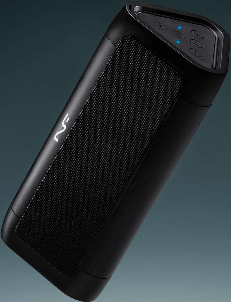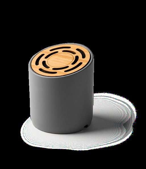 Wireless speaker with main structure in bamboo and elegant carry strap. Hands-free function. 3W output. Rechargable battery. Cable included. Presentation in eco design box.