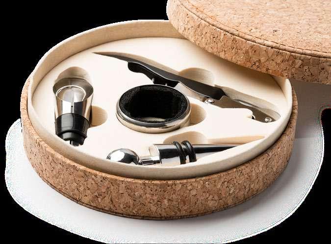 Wireless earbuds in recycled ABS and natural cork. Charging case with rechargable battery. Touch control panel in-built on the earpiece. Hands-free function. Type C connection. Cable included. Presentation in eco design box. 6,7 x 5 x 3 cm 1/50 100 E(4), L2, W