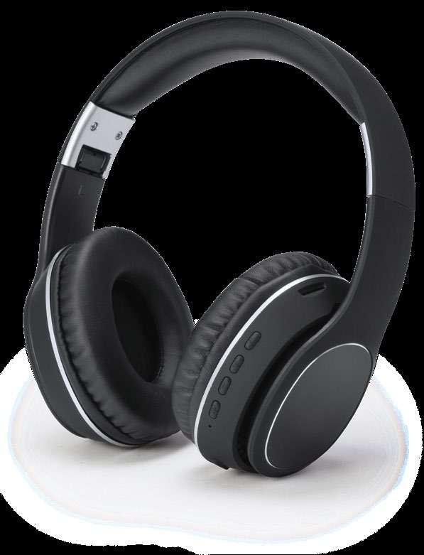 Adjustable wireless headphones in bamboo and RPET fabric. Padded headband and ear pads. In-built touch control with stereo technology. Hand-free function. Rechargable battery. Type C cable included. Presentation in eco design box.