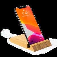 Foldable bamboo table lamp with in-built 10W wireless charger. 25 LED lights with 3 lightning and intensity modes. Light timer from 1 to 2 hours. Presentation in eco design box.